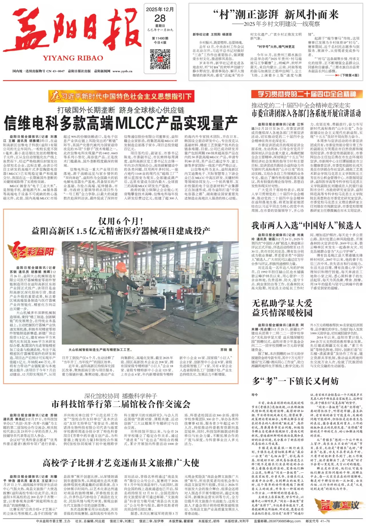 12月27日,在益阳高新区信维电子科技(益阳)有限公司的无尘车间内,一粒粒长度不到1毫米、最小直径堪比发丝的精微电子元件,正从全自动智能化生产线上鱼贯而下,经过严格检测后封装发往全球知名企业。这标志着,由该公司自主研发的高端片式多层陶瓷电容器(MLCC)已实现稳定量产和批量交付,我国在这一长期被国外垄断的关键领域取得了实质性突破。