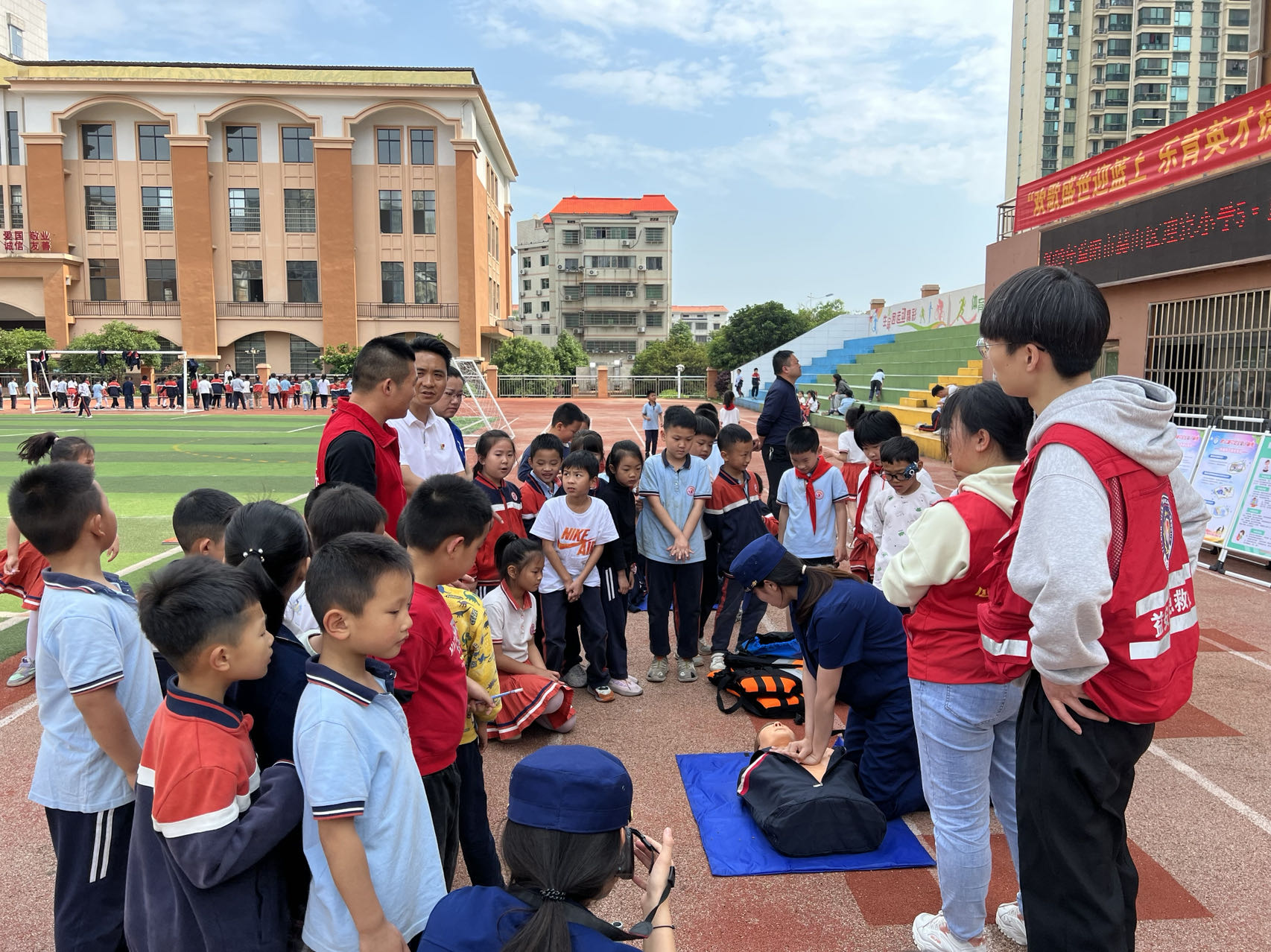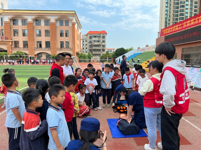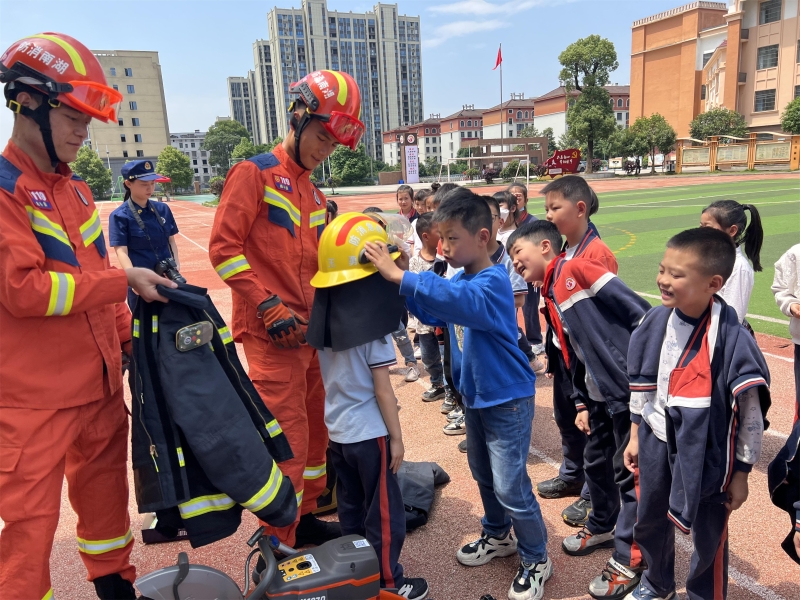 活动现场,市应急救援协会工作人员向全体师生们详细地讲解了心肺复苏的实施步骤和方法,并利用人体模型就胸外心脏按压、人工呼吸等急救关键环节的操作要点进行了详细的示范讲解。现场还邀请学生参与示范了海姆利克急救法。高新消防救援大队的宣传员和消防战士就“消防安全知识、防溺水安全知识进校园”进行了主题宣讲,宣传员与学生们以一问一答的形式将安全疏散演练、突发火灾应对流程、中小学生防溺水注意事项知识进行了生动的宣讲,有效夯实校园防灾减灾、消防、防溺水安全基础。消防战士们热情地为孩子们介绍各式消防装备和工具,让孩子们了解各种消防工具的功能及使用方法,消防装护具的现场互动教学,让孩子们亲身感受消防装备“炫酷”的同时也明白了穿上这身火焰蓝身上所肩负责任的分量。