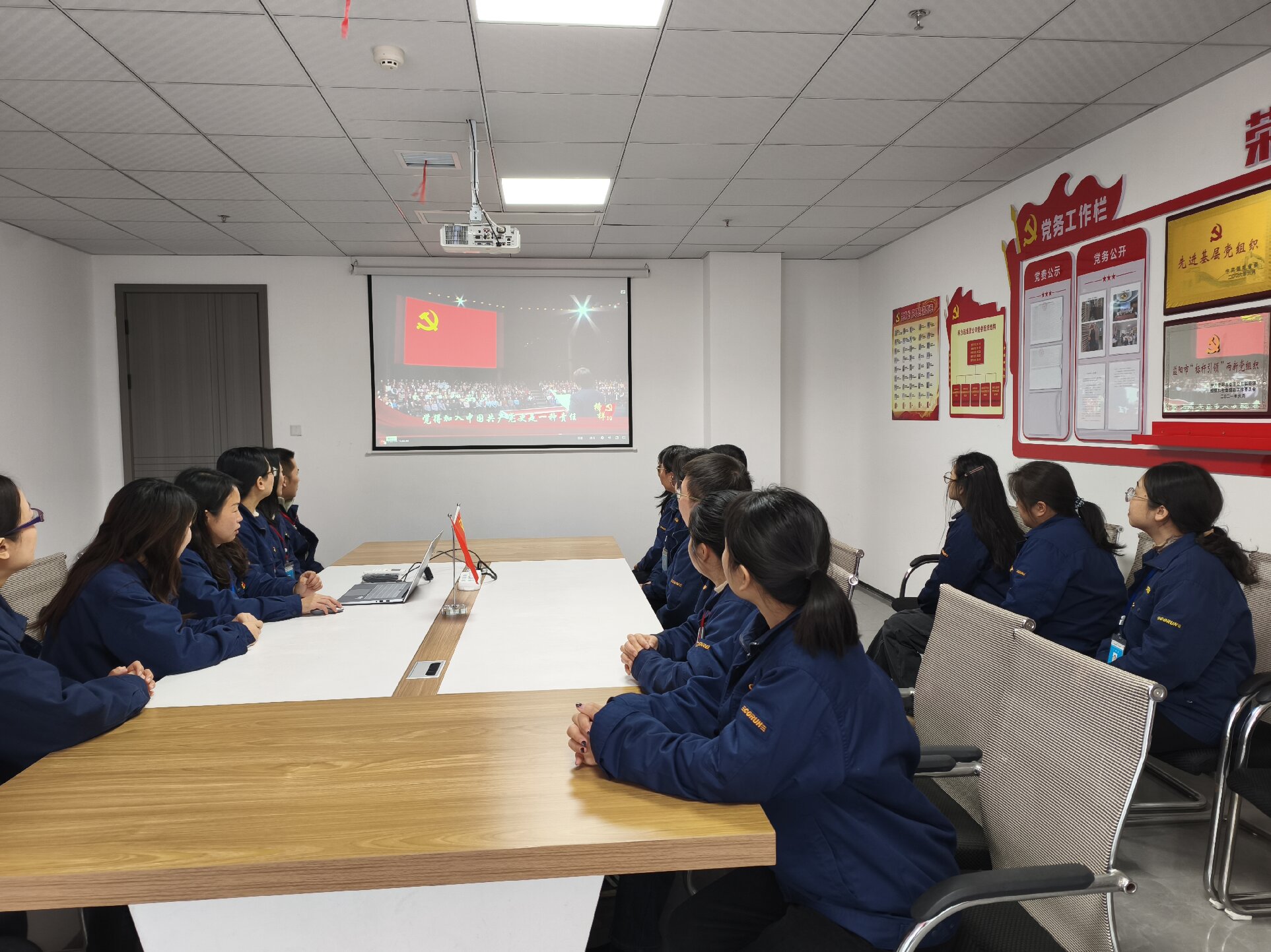 图为湖南蓝达环境科技有限公司党支部组织党员观看《榜样10》