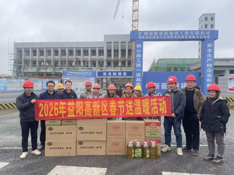 在益阳高铁片区消防站及物资储备中心项目施工现场,工人们正紧张有序地忙碌着,全力推进项目建设进度。慰问组将满载心意的大米、食用油等物品送到工人手中,对他们不畏严寒、坚守岗位,为园区发展付出的辛勤劳动表示衷心感谢,并叮嘱大家注意冬季作业安全,做好防寒保暖措施。