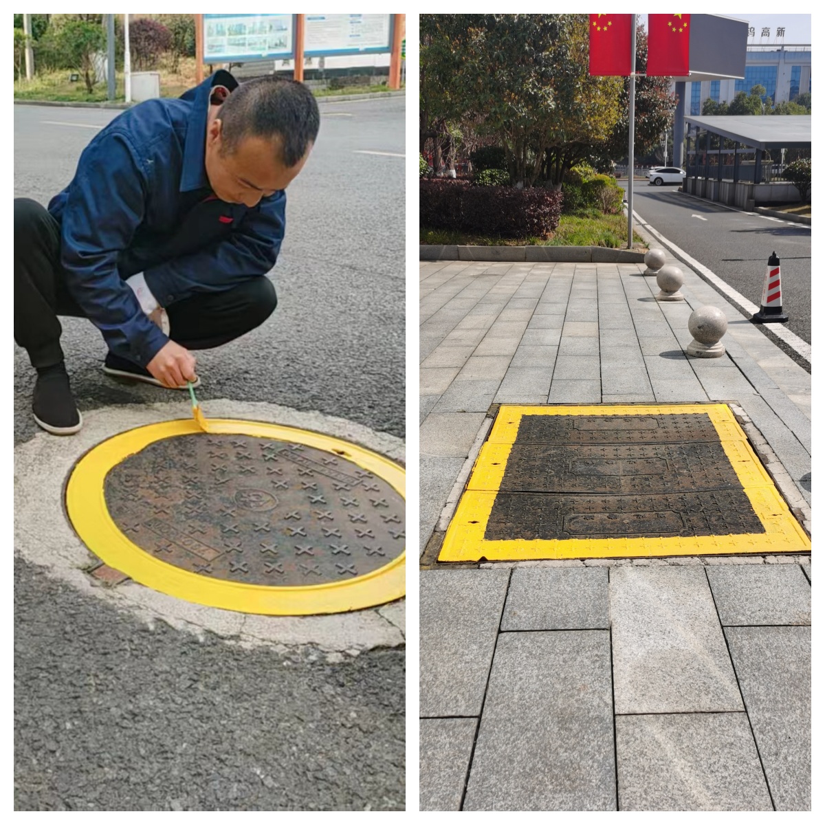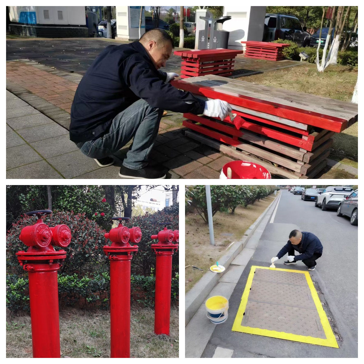 此次设施“微更新”聚焦于细微之处,重点对区域内室外消火栓、雨污水井盖、阀门井等易老化、易产生安全隐患的设施进行全面整治。作业过程中,物业维修人员严格遵循养护规范,先对设施表面进行打磨除锈、破损修补等预处理,再有序涂刷防锈底漆和表层标识漆。经过此番精心养护,原本锈迹斑驳的消火栓焕然一新,鲜亮的红色标识使其在应急情况下更易于辨识和启用;各类井盖也刷上了鲜明的彩漆,不仅延缓了金属材质的老化腐蚀,更对行人、车辆起到了显著的警示与引导作用。